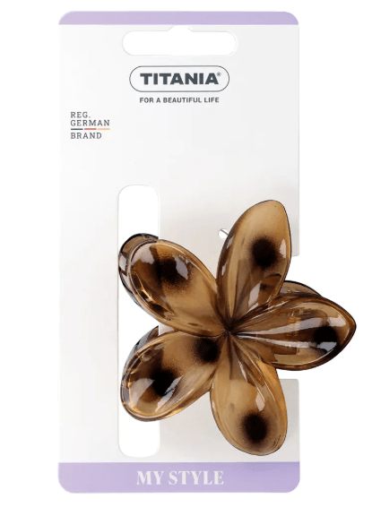 Titania My Style lillekujuline juukseklamber on pilkupüüdev aksessuaar, mis lisab igale soengule volüümi ja kauni dekoratiivse aktsendi. Suur viieleheline lill on valmistatud kvaliteetsest akrüülist, mille pruun-mustriline toon loob loodusliku ja stiilse viimistluse.